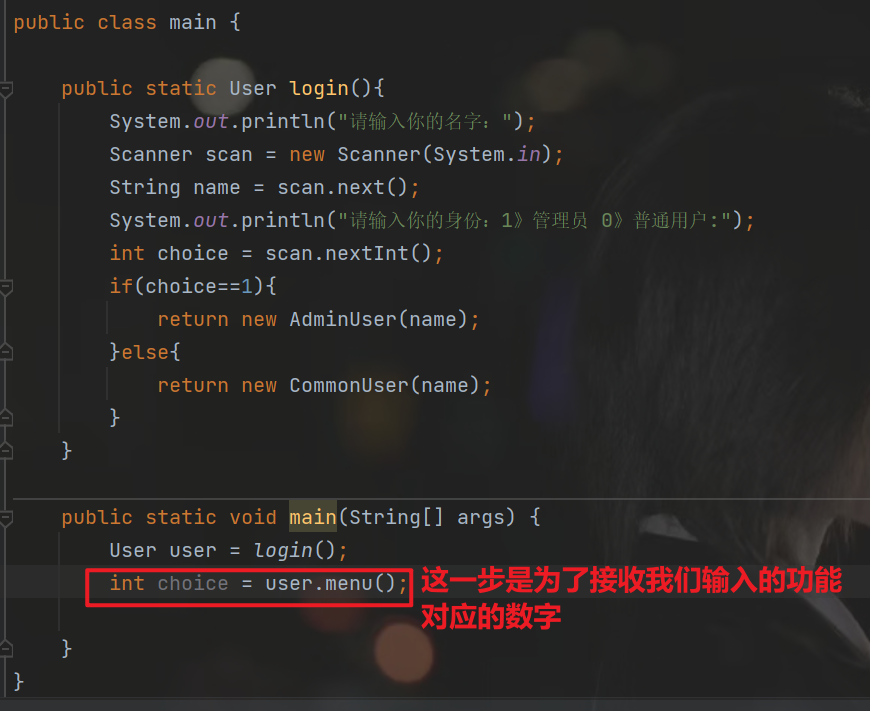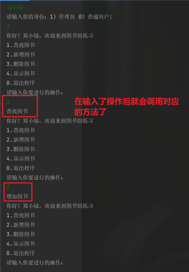 这样我们就分别把管理员和普通用户的菜单都写好啦!可以在main类中来把这些都串联起来。