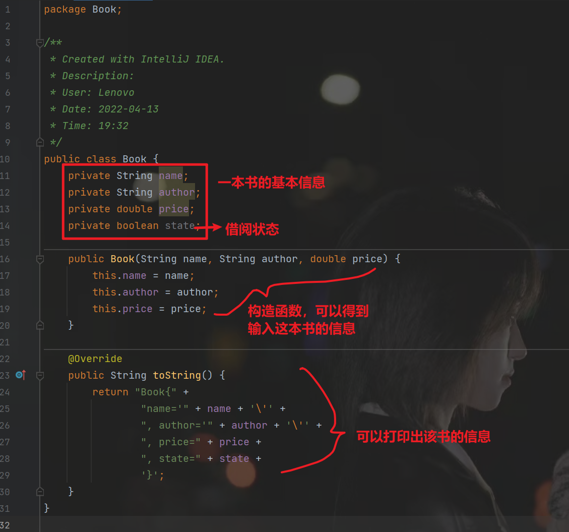 为了让用户的体验更佳,我们在这里将Book类中的toString方法修改为以下代码,以此来增加用户体验: