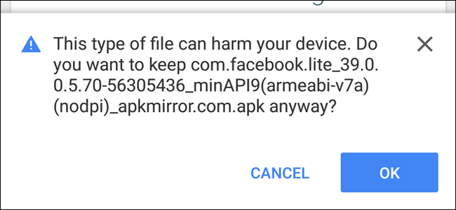 现在,您可以下载APK了。 如果让未知来源选项保持打开状态,您会感到困扰,您可以在完成后再次将其禁用-安装后,Facebook Lite仍然可以使用。