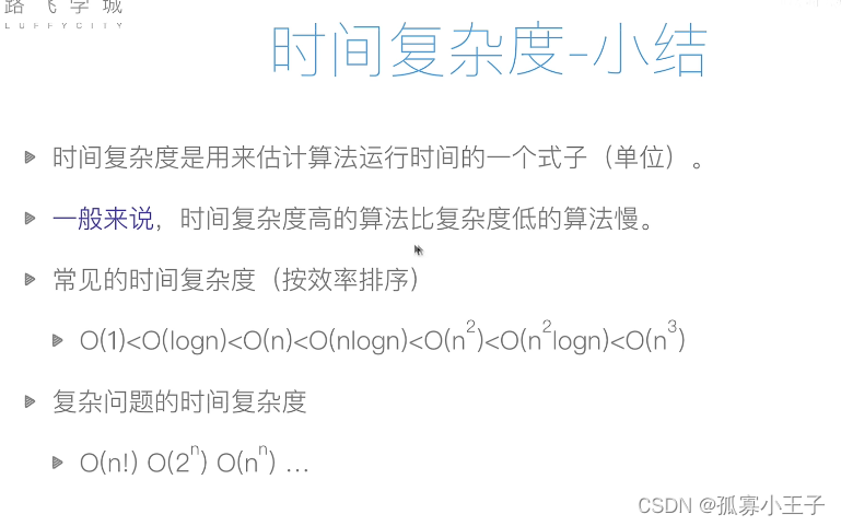 时间复杂度:(强调大概的时间,而不是具体的)