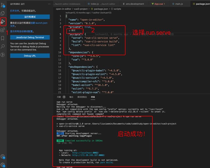 接下来,启动项目,推荐使用vscode自带的调试功能: