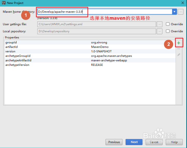5. 输入对应的name和value,然后点击OK。点击Next。archetypeCatalog表示插件使用的archetype元数据,不加这个参数时默认为remote,local,即中央仓库archetype元数据,由于中央仓库的archetype太多了,所以导致很慢,指定internal来表示仅使用内部元数据。
