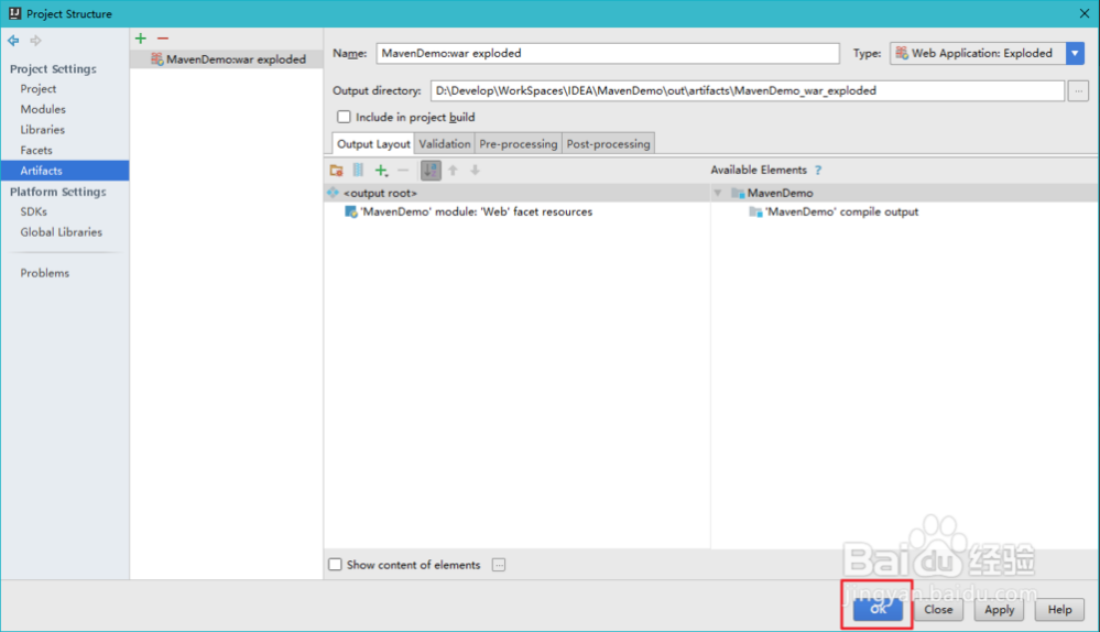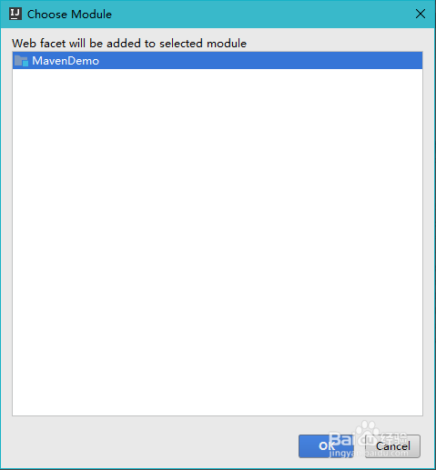 7. 在弹出的框中选择刚才创建的Maven项目(MavenDemo),Ok.