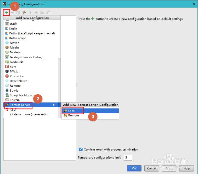 10. 在弹出的对话框中点击+号,找到Tomcat Server ,选择Local.