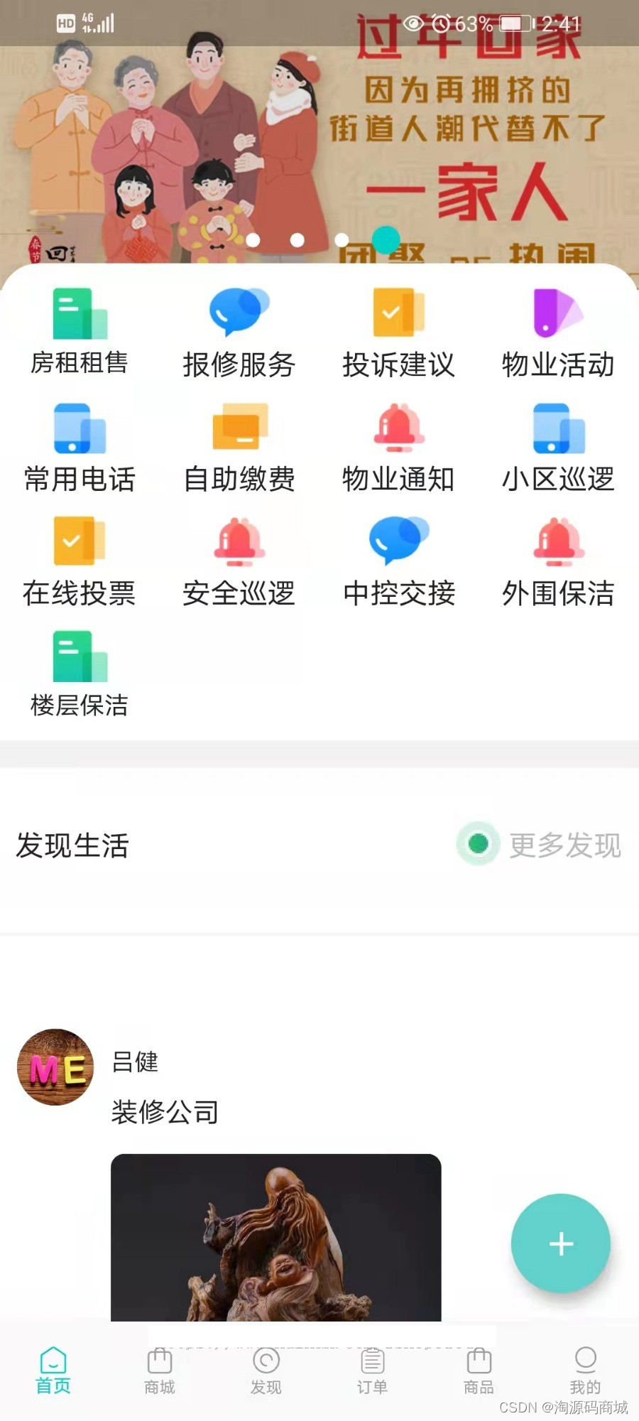 小区管理:我的小区,小区大屏、业务受理、房屋装修