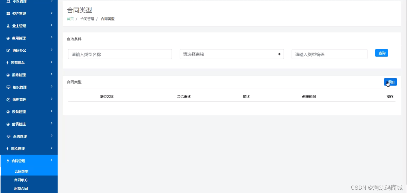 合同管理:合同类型、合同甲方、起草合同、合同查询、合同变更、到期合同