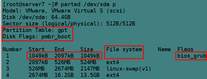 例如使用gun parted工具时,可以设置为bios_grub标识: