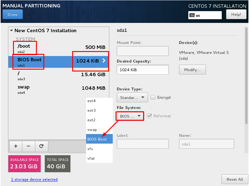 当在gpt磁盘上创建一个BIOS boot分区时,需要保证两件事:(1)它最小是31kB大小,但一般都会为此分区划分1MB的空间用于可扩展性;(2)必须要有合理的分区类型标识(flag type)。