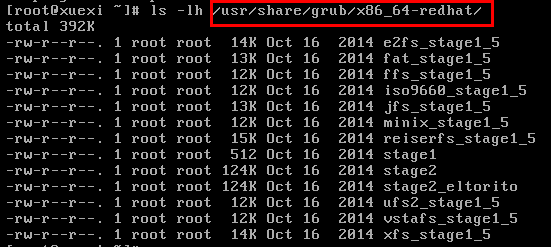 [root@xuexi ~]# ls /usr/share/grub/x86_64-redhat/