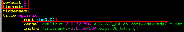 shell> grub-install /dev/sda1.7.2 grub.conf配置