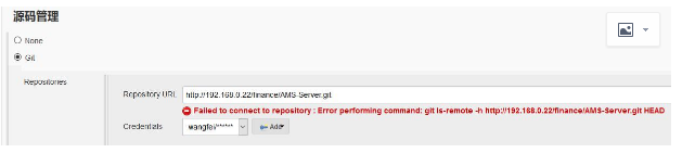 2、Failed to connect to repository : Error performing command: git ls-remote -h http://192.168.0.22/finance/AMS-Server.git HEAD