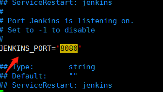vim /etc/ini.d/jenkins 进入编辑模式后寻找8080的字样,新版的jenkins并没有找到