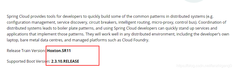 springcloud版本为Hoxton.SR11,对应的springboot版本为2.2.0.RELEASE and <2.3.12.BUILD-SNAPSHOT