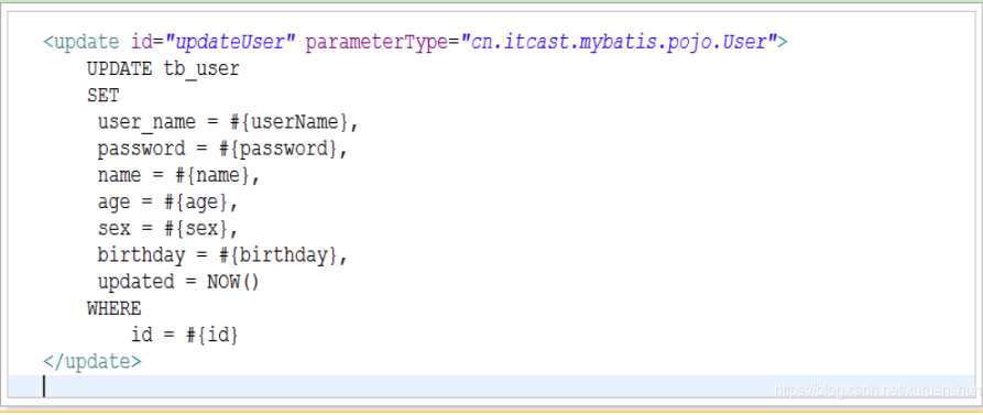 <select id="queryUserByWhere3" parameterType="com.dayee.entity.User" resultType="com.dayee.entity.User">