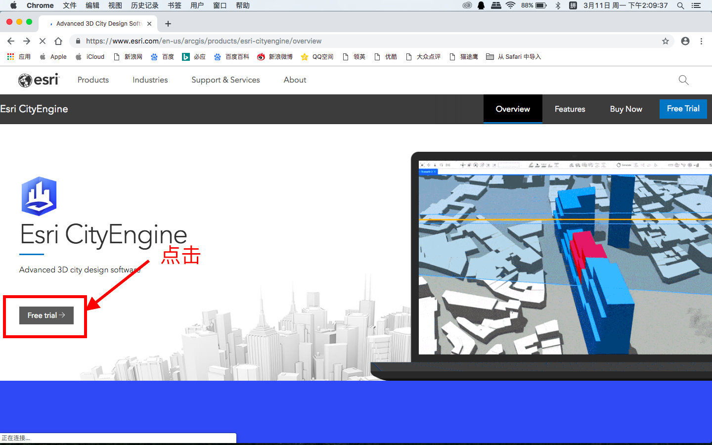 1、首先,打开你的浏览器,输入网址http://www.esri.com/software/cityengine就可以进入CityEngine的主界面,是这样的: