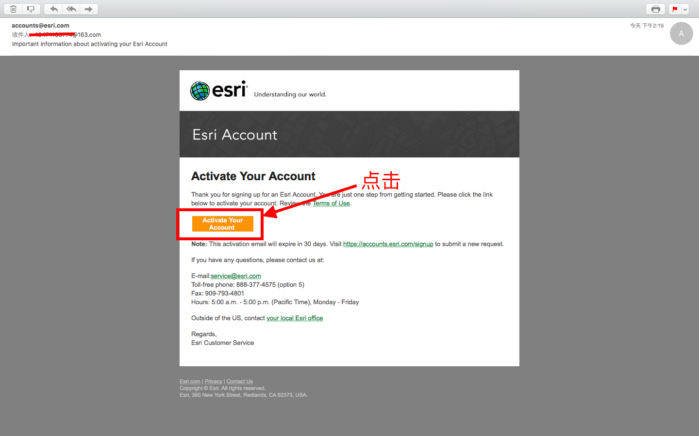 5、到这一步你就注册成功了,在你刚才输入的邮箱里找Esri官方邮件。