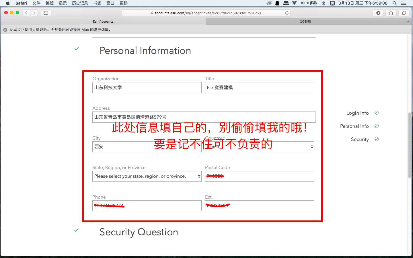 8、继续往下,认真填写自己的信息,最好记住,以防以后要用!