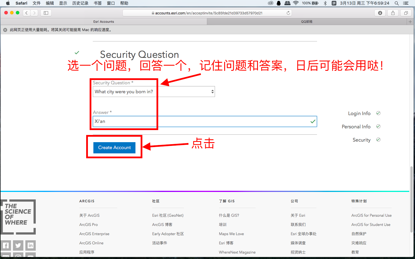 9、私人问题也要填的哟,选一个填一个(别偷填我的),记不住不负责的,最后点击Create Account.