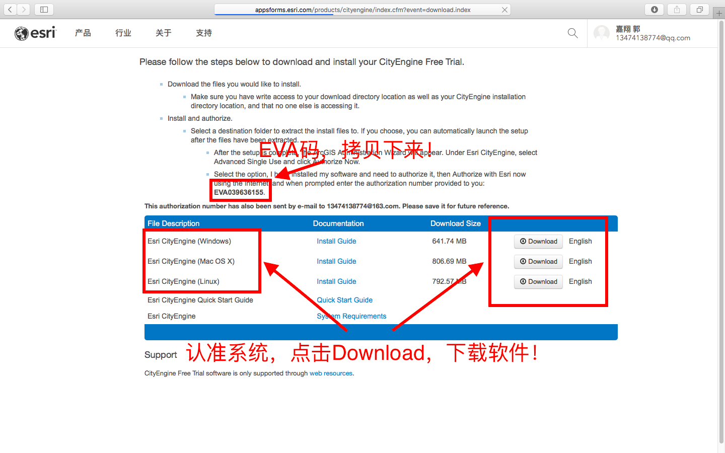 重要的是来了,记住EVA开头的很奇怪的码,不想记也没关系,复制粘贴即可,这个就是所谓的激活码,软件激活一次可以免费试用一个月,激活码可以无限申请,就是每次进入这个页面就可以获得,哈哈,是不是很开心,很愉快,很想被举高高呀!