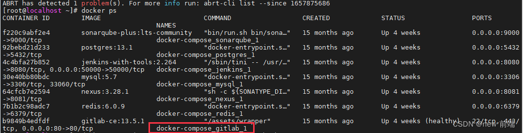 进来后,你docker ps 看一下 你们的gitlab的名称是什么