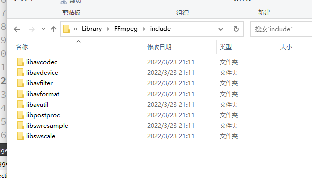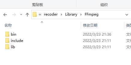 我这里吧FFmpeg库放到了library文件夹下,以后要是还需要其他第三方库可是都放到这里面.