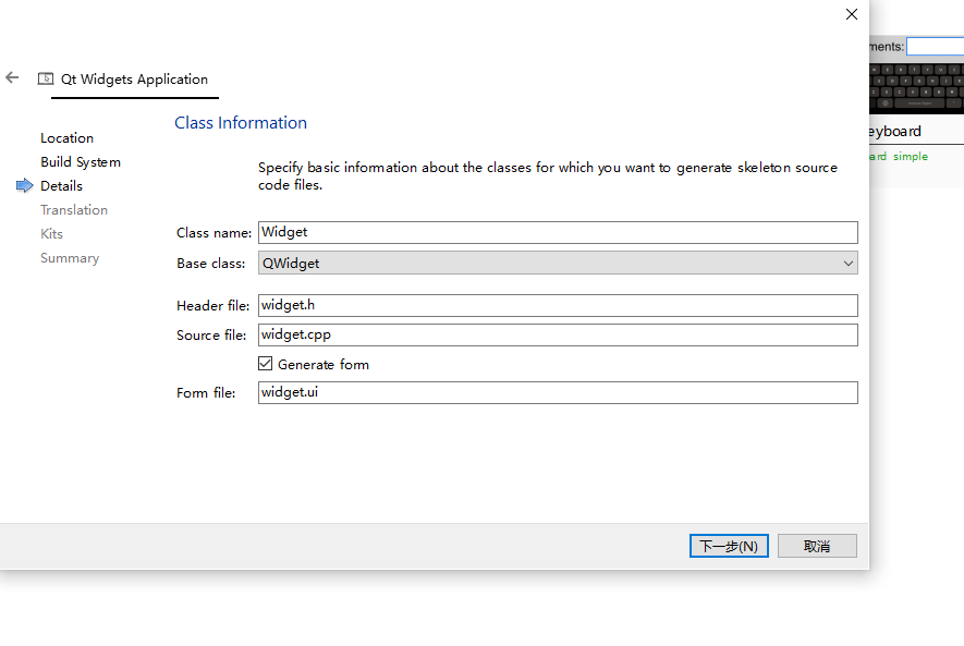 选择UI类型,我这里选的 widget,其他的也是一样的,对本次实验不影响