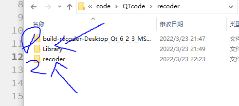 Library文件库是存放第三方库用的,recoder是存放Qt源代码的,这样使用相对路径存放库,最后既是把上一层的recoder文件夹打包移植到其他地方也不会出现编译问题,或者找不到文件问题.