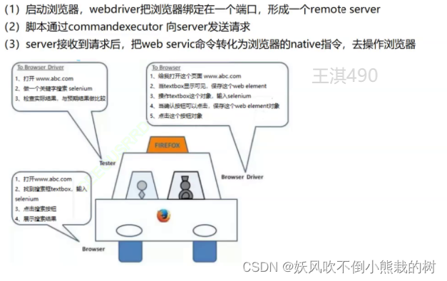 (3)浏览器驱动把指令解析成web service的命令,驱动浏览器进行一系列的操作