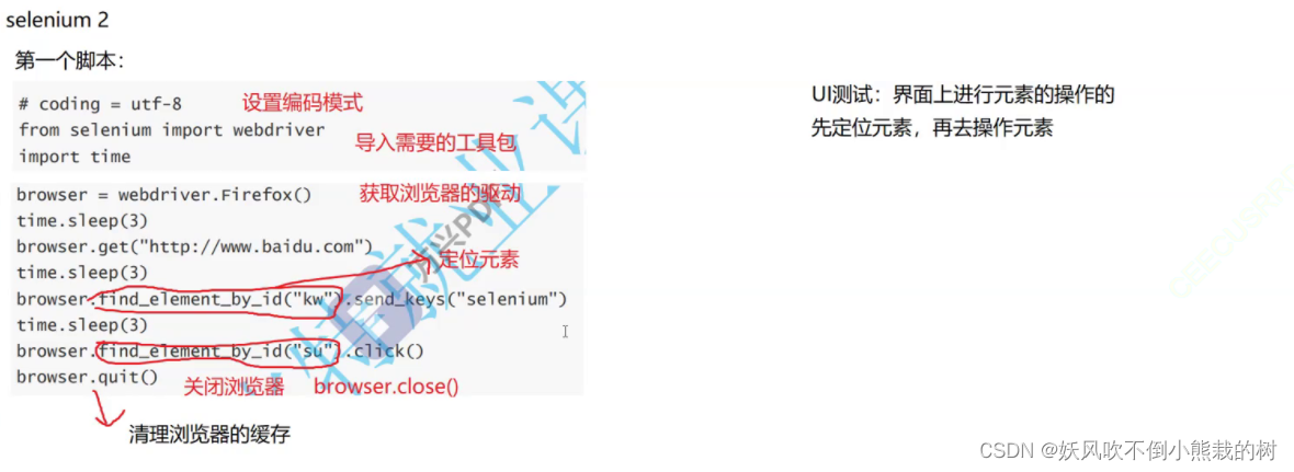 对系统的界面元素进行操作,模拟用户的使用,完成功能的正常和异常测试。