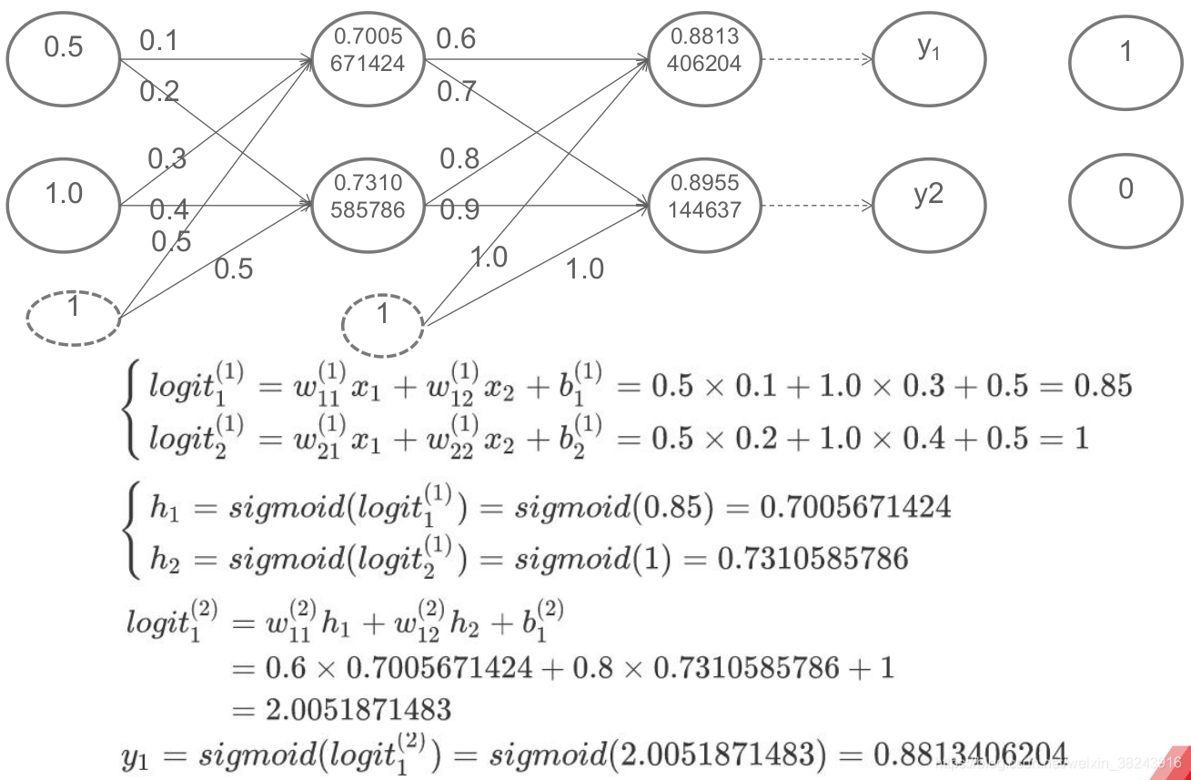 神经网络的前向传播与感知器的前馈计算类似,只是激活函数不同。