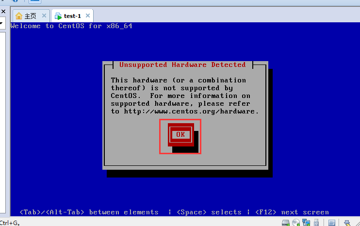 11.通过键盘选择安装或更新存在的系统。后面的步骤都需要鼠标在centos和Windows中切换:点击centos的屏幕后,鼠标进入centos,这时鼠标和键盘都只能操作centos;按住Ctrl+Alt就可以将鼠标回到Windows中了。