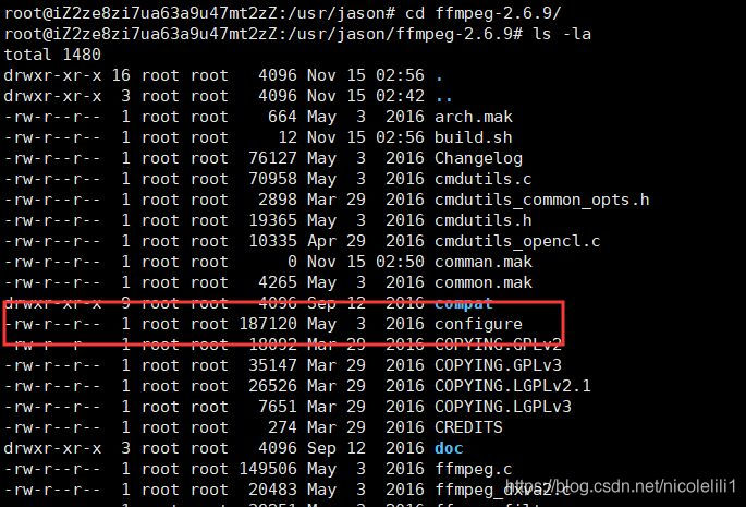 cd ffmpeg-2.6.9/ :进入到文件夹ffmpeg-2.6.9的目录