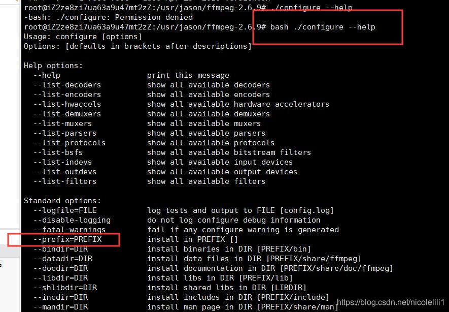 --prefix指定存放发目录,--prefix之前不允许有空格,但是可以使用“TAB”键