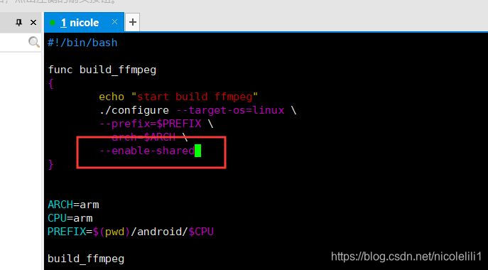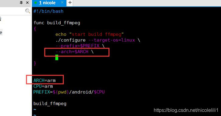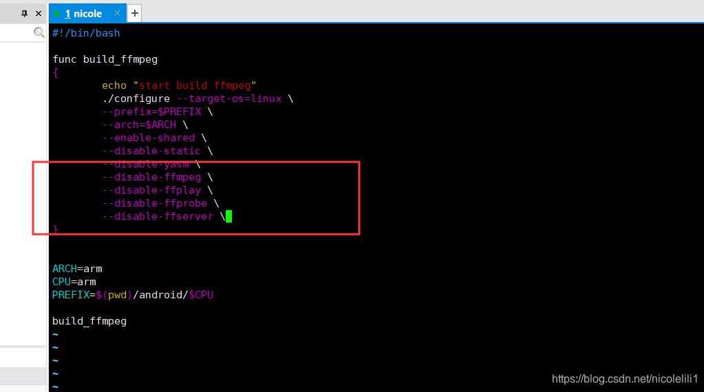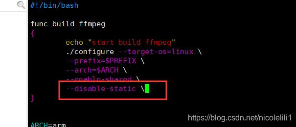 函数名“build_ffmpeg”和“{”之间至少需要一个空格,所以最好按下面的方式来写