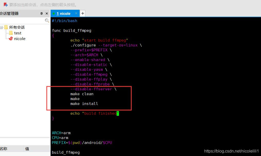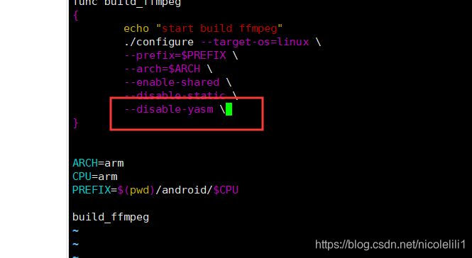 编译ffmpeg,编写shell脚本之前,要执行.configure --disable-yasm命令。执行这些命令的主要目的是进行一系列的准备工作,比如说检查gcc的版本,会生成common.mak等文件