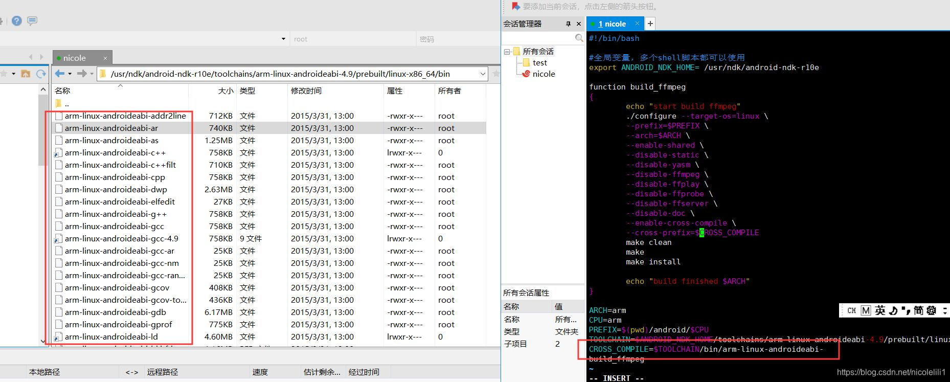 交叉编译使用到了arm-linux-androideabi-ar、arm-linux-androideabi-as、arm-linux-androideabi-a++等工具,需要指定这些工具的路径,其中最后的“-"表示通配符