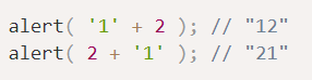但是如果加号+被应用于字符串,他将合并各个字符串,哪怕只有一个运算元是字符串。