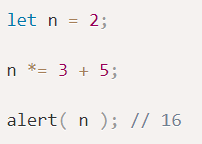 所有的算术和位运算符都有简短的“修改并 赋值”的运算: /= 和 -= 等