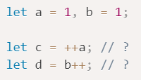 那么将运算符至于变量的前后(counter ++、++counter)又有什么区别吗,首先他们的共同点就是:将变量与1 相加/相减,区别是: