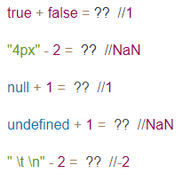 // 在二元运算符加号起作用之前,所有的值都被转化为了数字