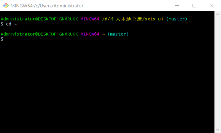 退出git终端,再次打开执行git push origin master命令,输入一次账号密码后过后无需继续输入