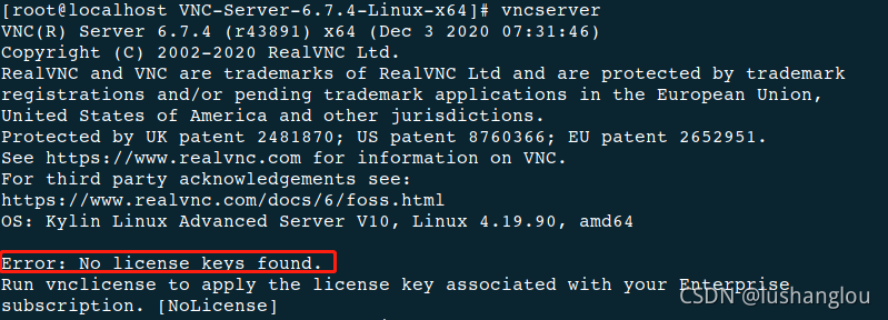 环境:远程主机是vm16pro里装的KylinServerV10,本地主机是win10。软件使用的是realvnc