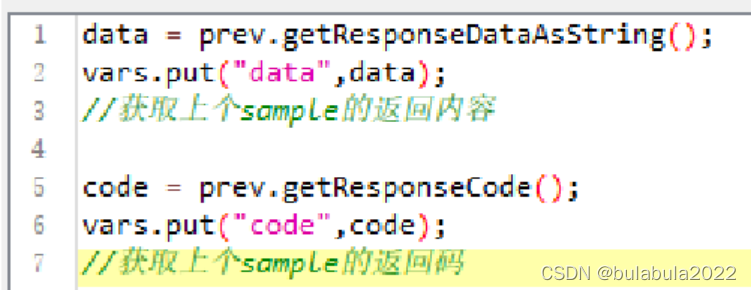 JMeter在内嵌BeanShell时默认创建了一些内置变量,以方便使用者调用,以下是一些常用的BeanShell内置变量: