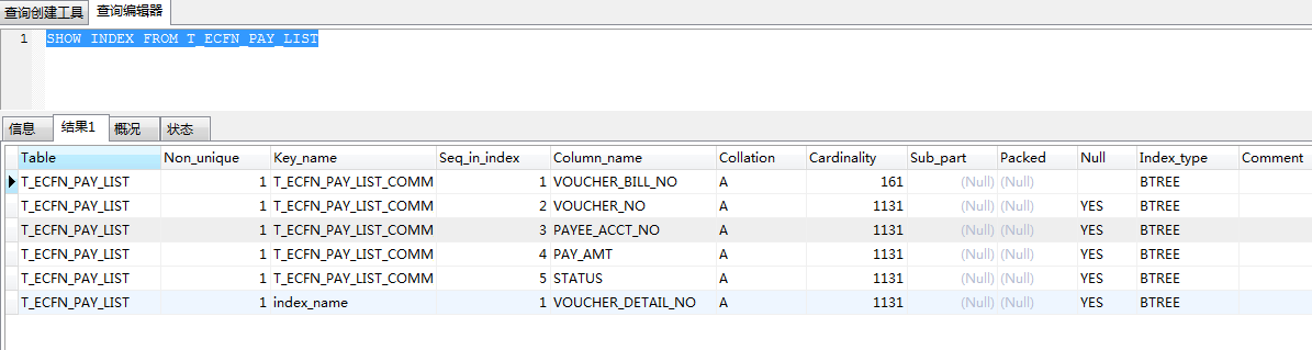 SHOW INDEX FROM T_ECFN_PAY_LIST