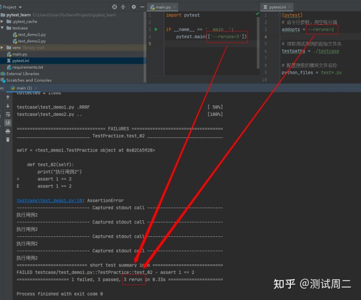 举例:命令行参数值为3,pytest.ini参数值为2,实际执行的参数值为3