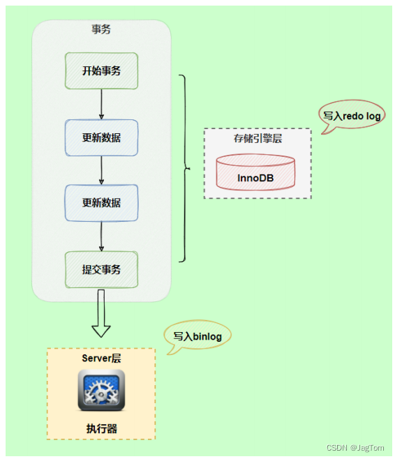 在执行更新语句过程,会记录redo log与binlog两块日志,以基本的事务为单位,redo log在事务执行过程 中可以不断写入,而binlog只有在提交事务时才写入,所以redo log与binlog的 写入时机 不一样。