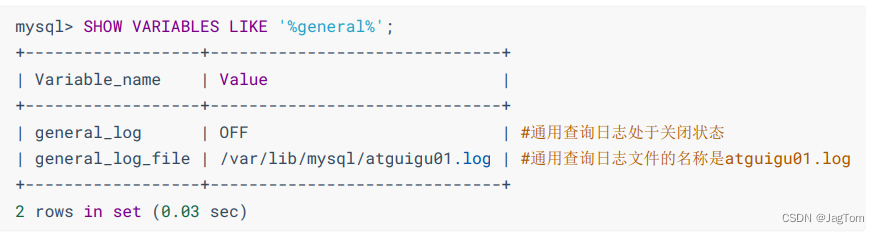 SET GLOBAL general_log=off; # 关闭通用查询日志