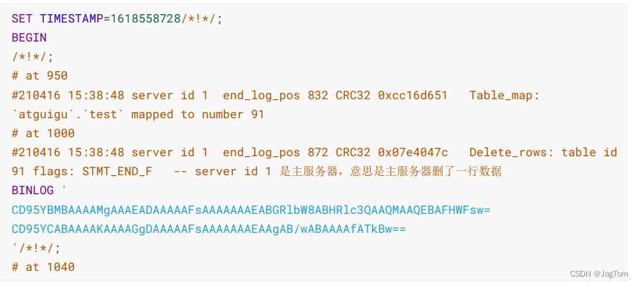 这一段的意思是,主服务器(“server id 1”)对表 atguigu.test 进行了 2 步操作:
