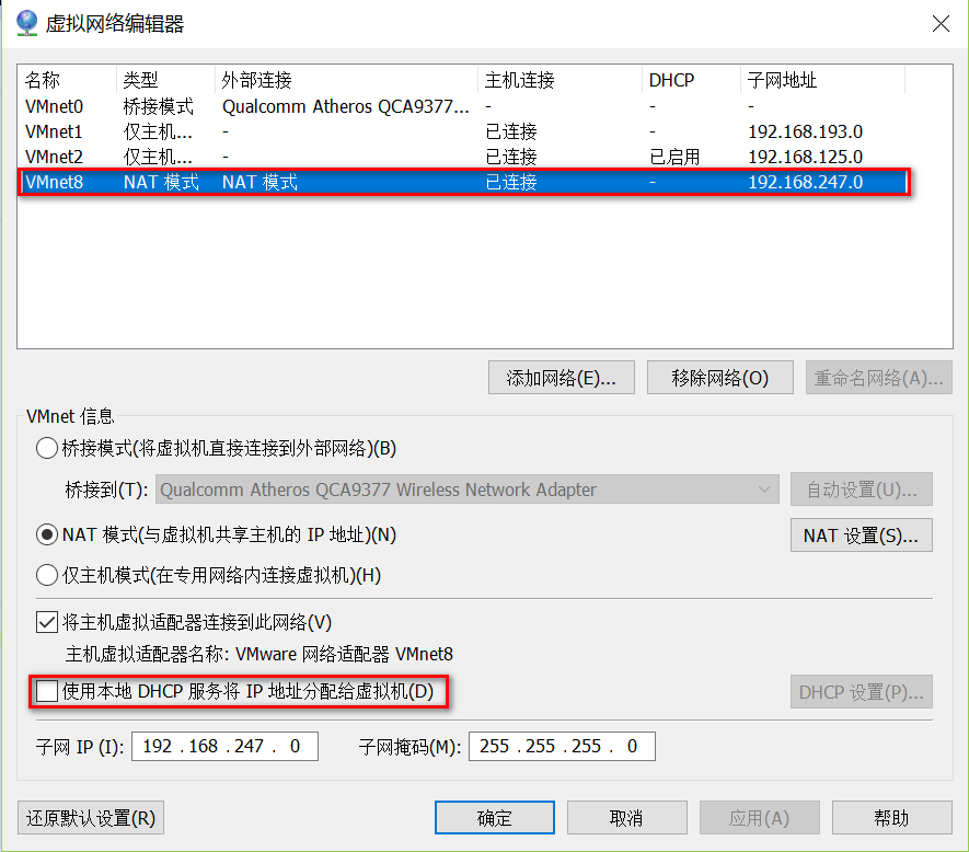 7.2 禁用 VMware 的 DHCP 功能(此步很重要)