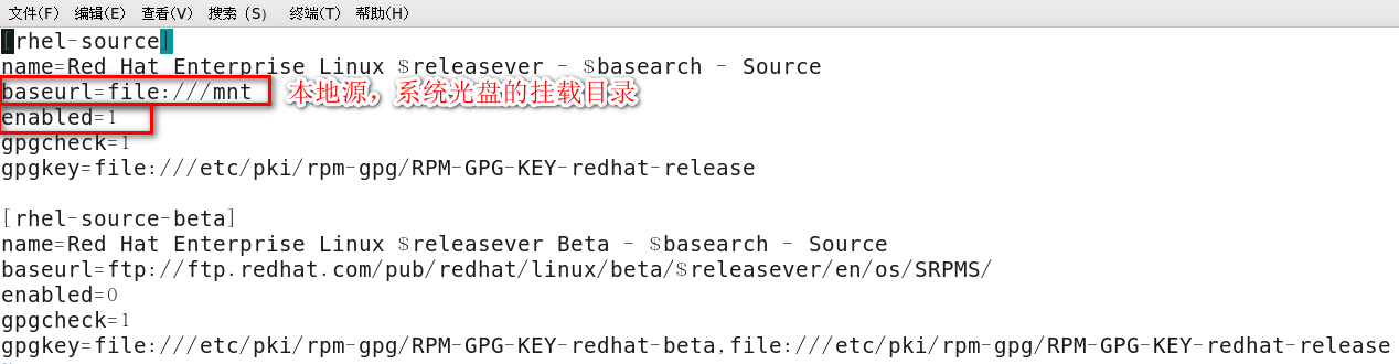 1.3 挂载 RHEL6.5 光盘,建立服务器的 YUM 仓库文件 rhel-source.repo (服务器自己的 YUM 为:本地源)